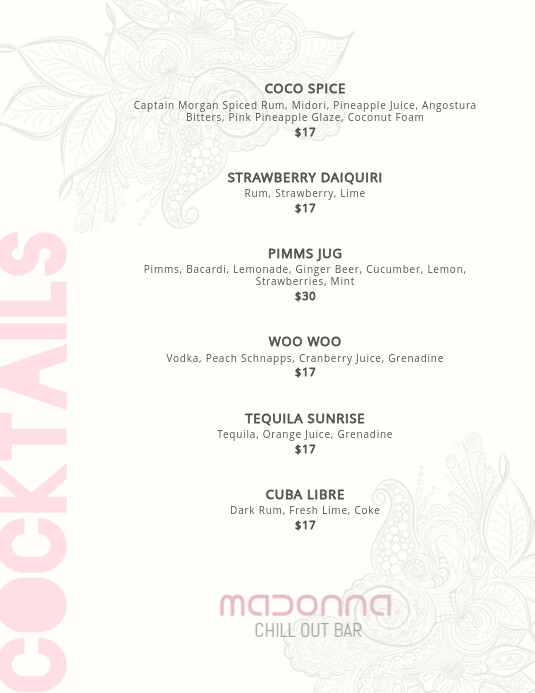 Minimal Cocktail Menu Template Postermywall