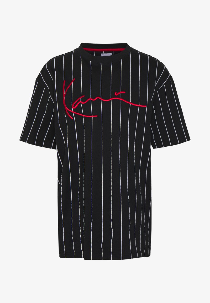 Karl Kani Signature Pinstripe Tee Print T Shirt Black White Red Black Zalando Co Uk