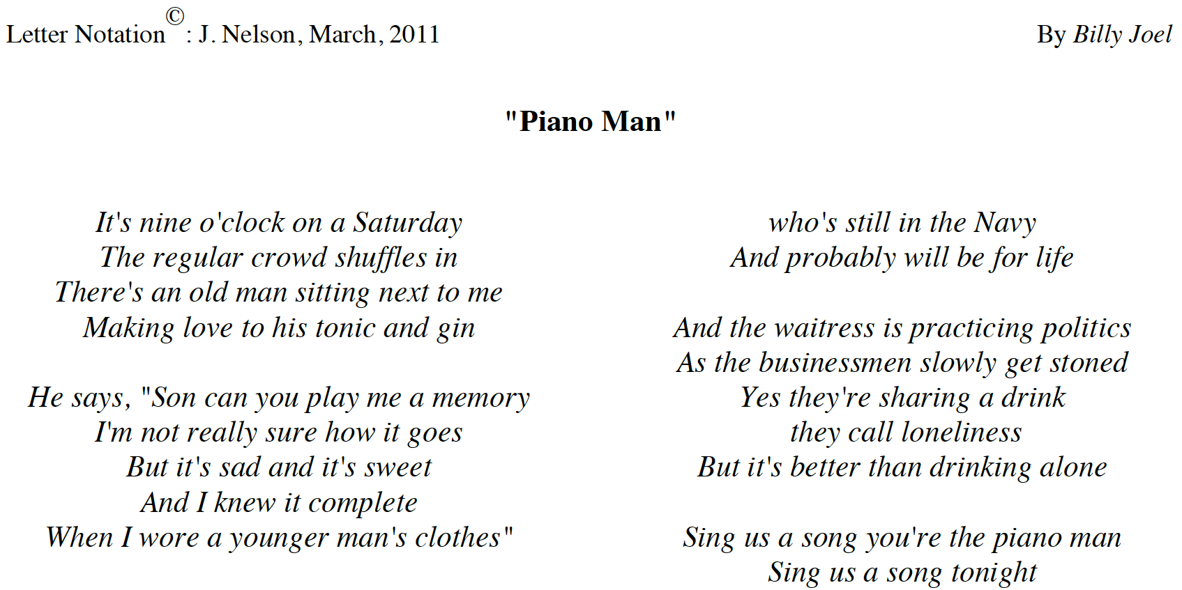 Piano Man Text