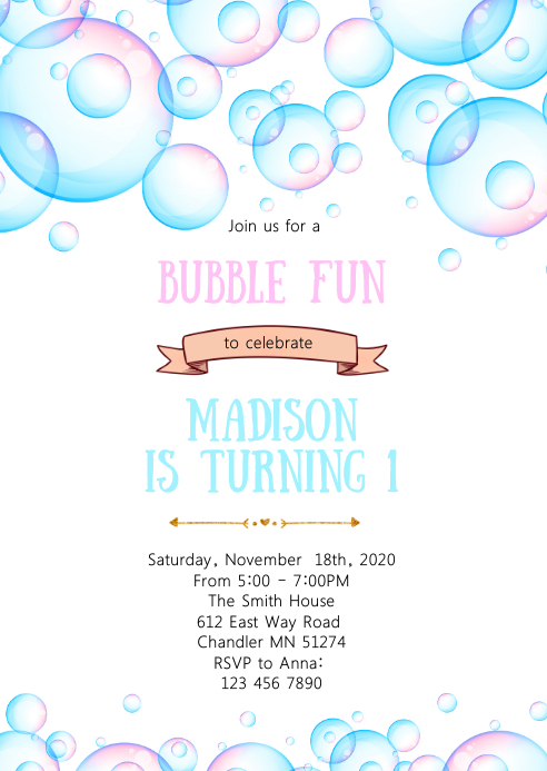 Bubble Fun Birthday Party Invitation Template Postermywall