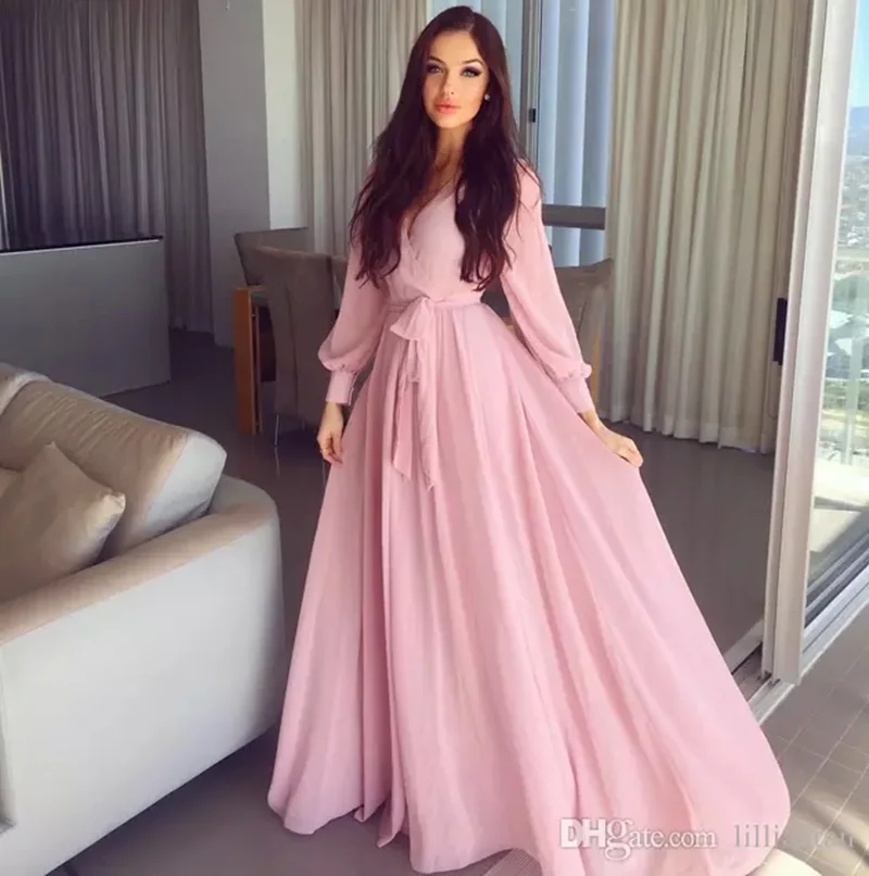 Einfache A Line Rosa Abendkleider Kleider Langarm Bodenlangen Poet Graduation Frauen Lange Party Kleider Robe De Soiree Robe De Soiree Evening Dress Long Sleeveevening Dresses Long Aliexpress