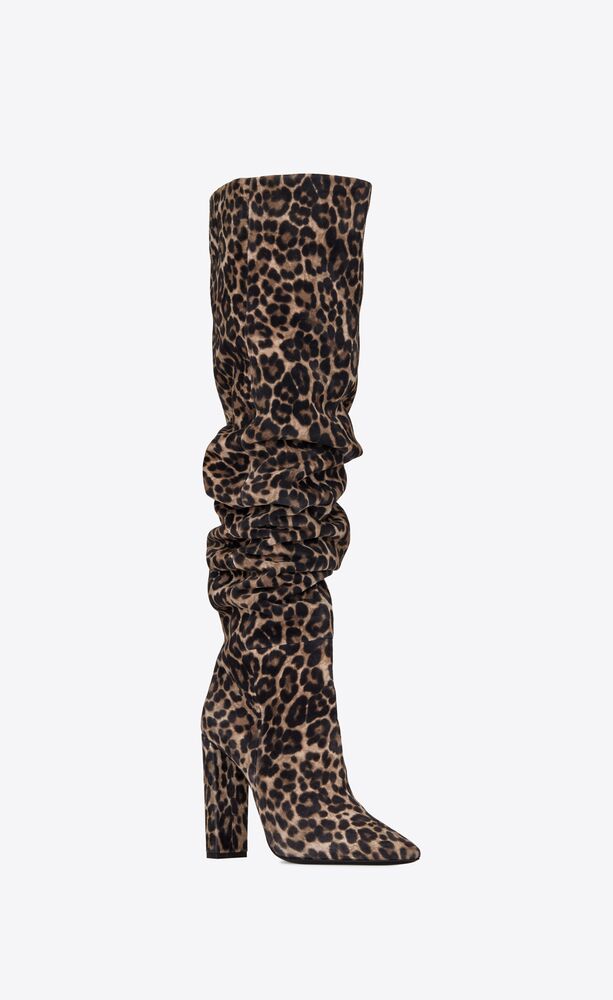 76 Overknee Stiefel Aus Wildleder Mit Leoparden Print Saint Laurent Osterreich Ysl Com