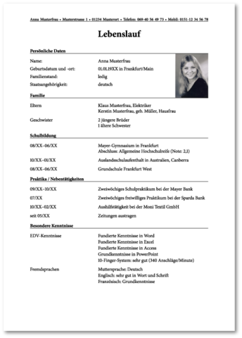 Lebenslauf Muster Fur Die Bewerbung Meinebewerbung Net