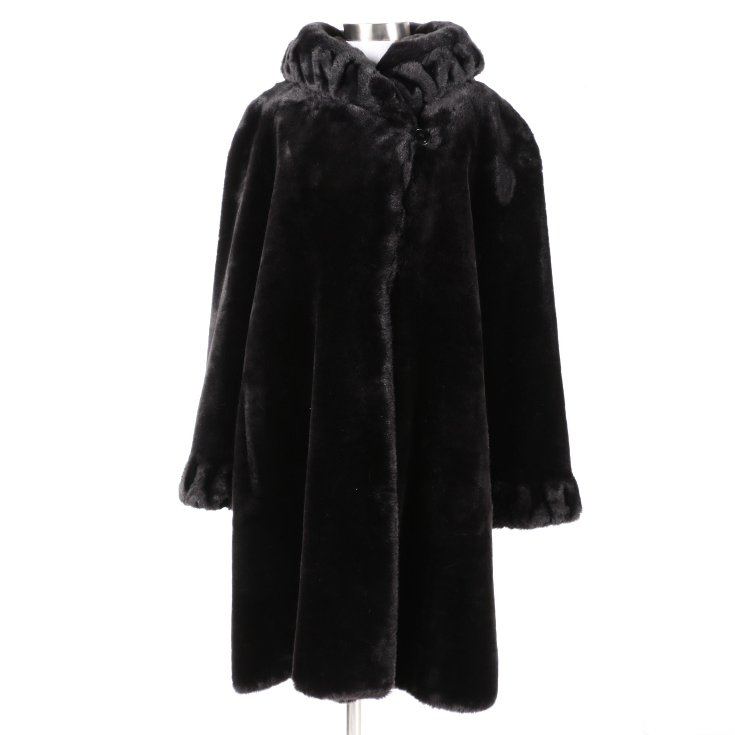 Women S Jones New York Black Faux Fur Full Length Coat Ebth